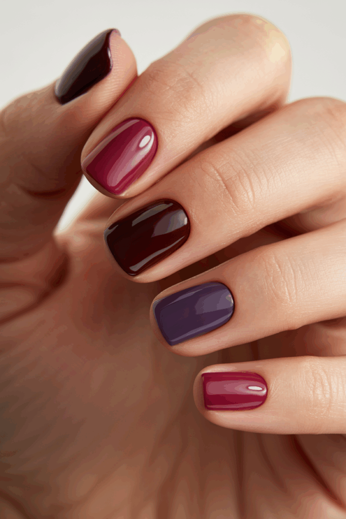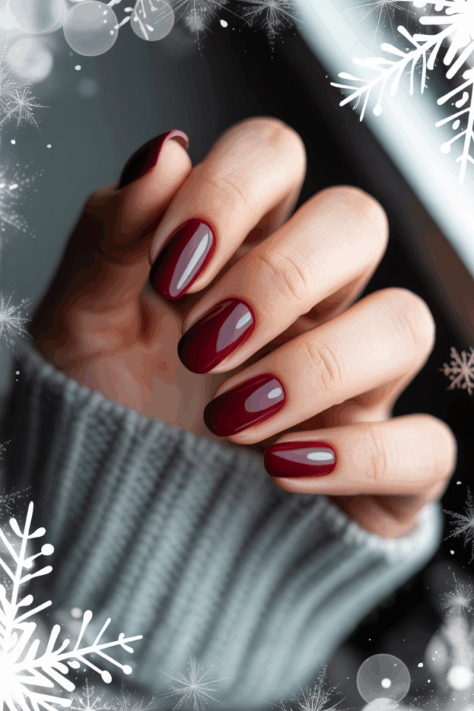 Oxblood brings drama without excess. This deep red shade with a brown undertone feels mysterious and luxurious, offering the perfect balance of strength and femininity. It’s a classic color for anyone who loves bold tones that still feel refined. A high-shine topcoat enhances its richness, while pairing it with gold rings or champagne-colored sweaters makes the whole look effortlessly stylish.