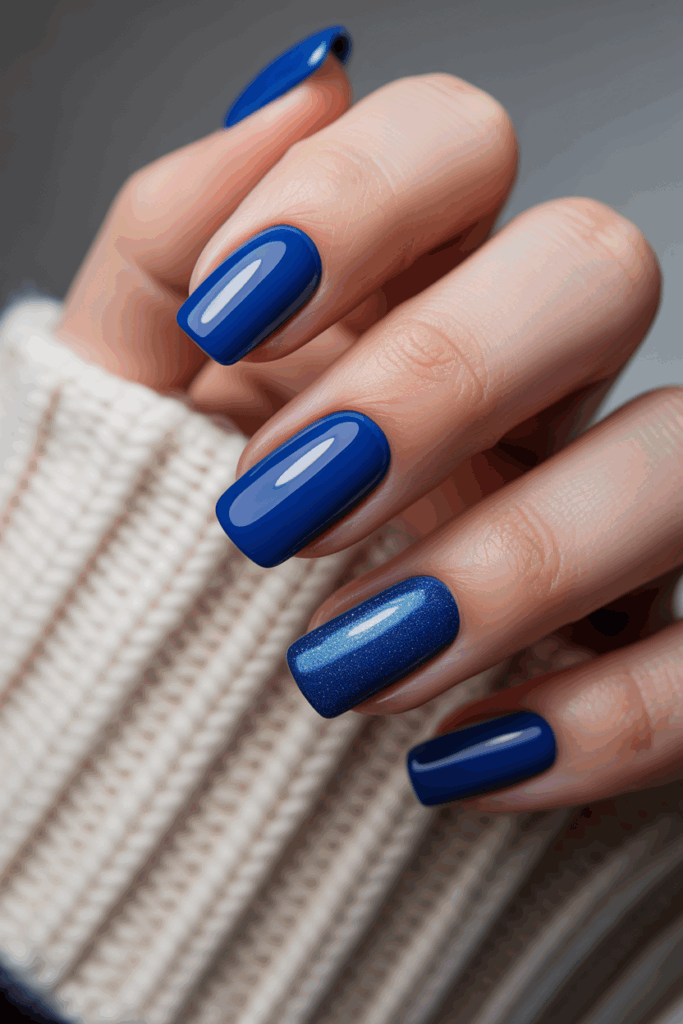 Sapphire blue with glitter accents adds instant glamour without being overwhelming. The deep jewel tone captures the light beautifully, while fine sparkle at the tips or on one accent nail makes the design festive yet tasteful. It’s a go-to choice for holiday parties or winter weddings, offering a perfect balance between luxury and fun.