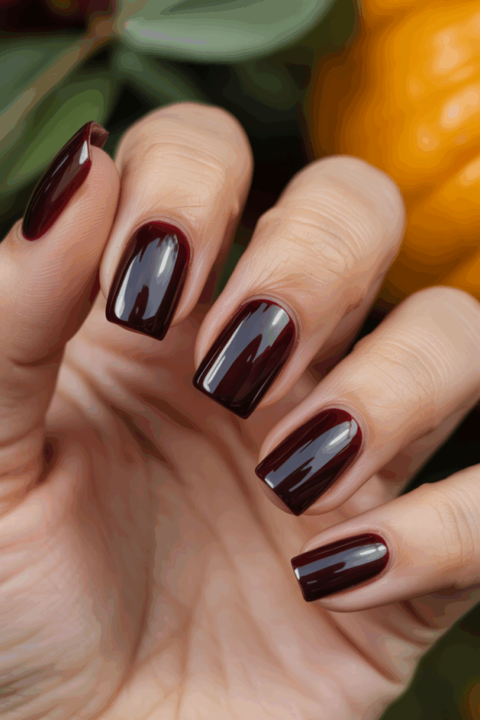4) Black Cherry Nails with Glossy Finish