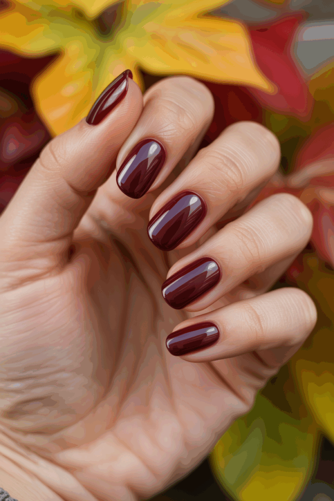 Burgundy has long been a fall favorite, and for good reason. This deep, wine-red shade offers instant sophistication and complements nearly every skin tone. A glossy finish gives it a luxurious, polished appearance that feels right at home next to chunky scarves, gold jewelry, and seasonal lattes.
