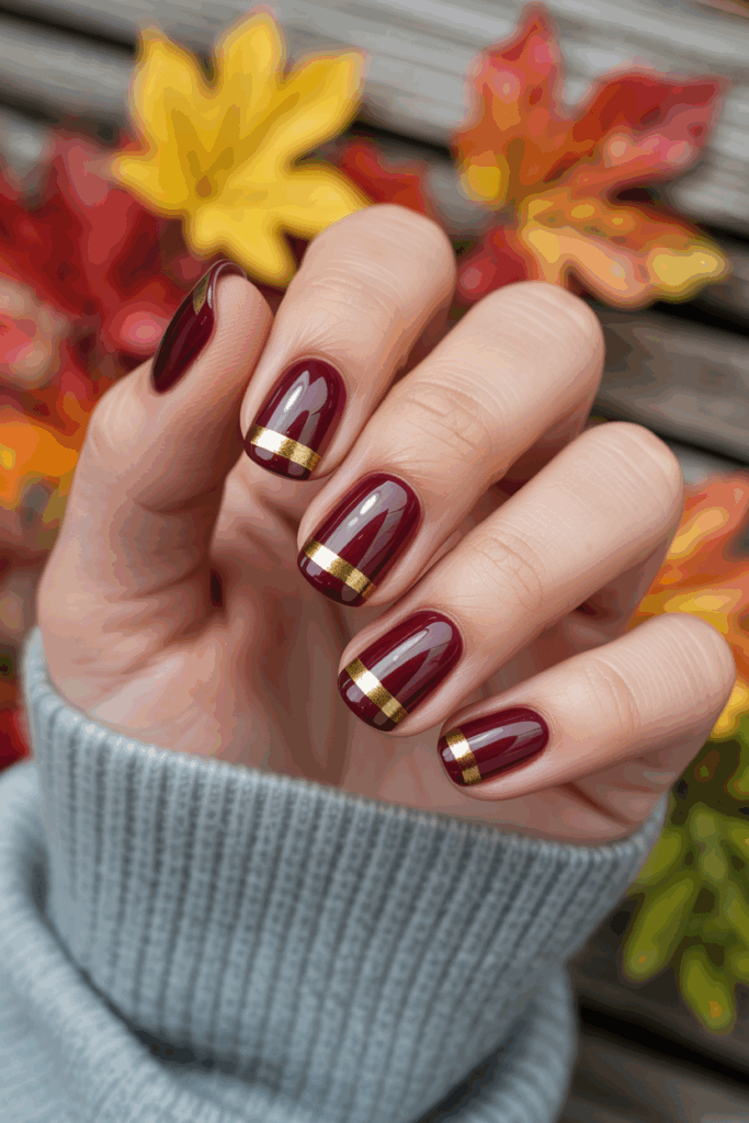 You can experiment with thin lines, half-moons, or tiny stars for a celestial feel. This manicure pairs well with denim jackets, crisp shirts, or knit sweaters — a stylish nod to fall’s effortlessly layered aesthetic.