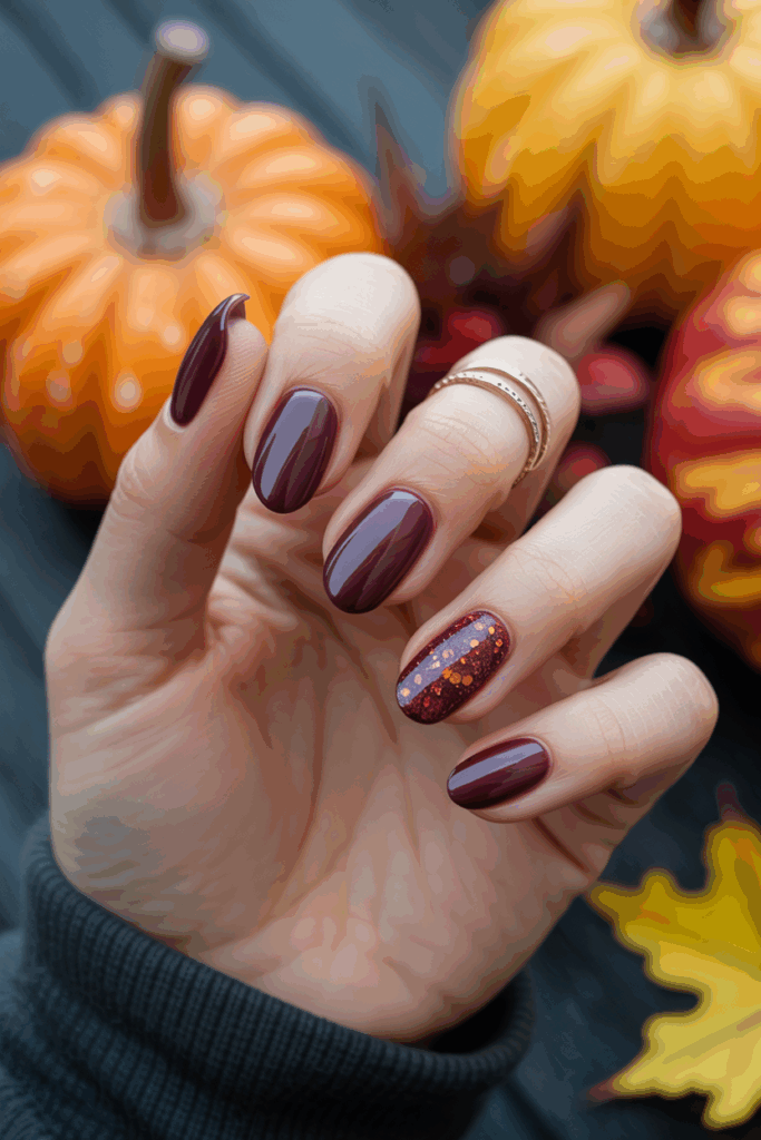 Try adding a matte topcoat for a velvety finish that looks smooth and modern. This manicure feels mysterious and artistic — the kind of understated drama that captures autumn’s moody elegance.