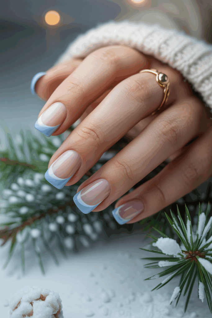 Swap the traditional white tip for a pale, icy blue and you’ll get a winter-ready French that still feels elegant and crisp. The cool tone freshens the classic silhouette, while clean smile lines keep things timeless and office-friendly. Finish with a thin line of pearly shimmer where the base meets the tip for a subtle frosted highlight that reads chic, not flashy.