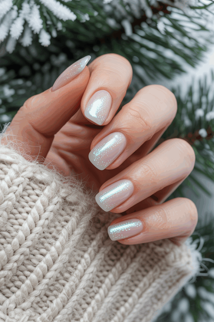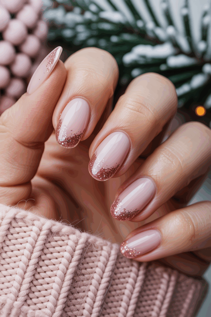 A blush-to-clear ombré brings a healthy, fresh tone to nails, and a whisper of fine glitter at the tips gives it a snow-kissed finish. The gradient is forgiving on short or mid-length nails and looks great with a glossy, gel-like topcoat. It’s simple to do at home with a sponge or sheer polishes, and the delicate sparkle adds just enough festivity for parties without going full glam.