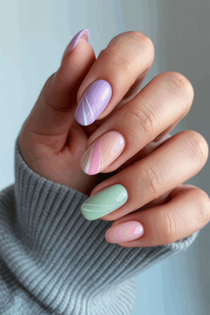 Glazed donut nails have quickly become a favorite for winter because of their dewy, frosted glow. Using sheer pastel shades like powder pink, icy lilac, or pale mint, the finish creates a luminous, pearl-like effect reminiscent of soft winter light. This manicure works on any nail length and looks stunning under both natural and artificial lighting. The soft pastel tones pair beautifully with cozy knit sweaters and winter whites, giving a polished yet effortless aesthetic that transitions easily from daytime errands to evening dinners. It’s understated luxury with a winter twist.